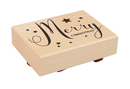 Rayher Stämpel trä "Merry Christmas", 6 x 8 cm, textstämpel trä, trästämplar, julstämplar, smörstämpel, 29225000