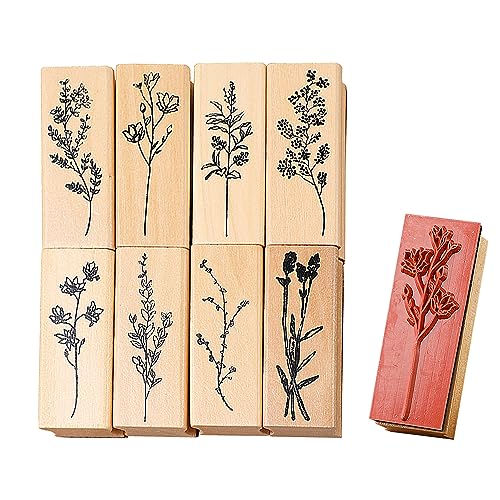 8 trästämplar, vintage trästämplar, blommönster, stämpelset, gör-det-själv-tillbehör, återanvändbara, lämpliga för scrapbooking, dagböcker, fotoalbum