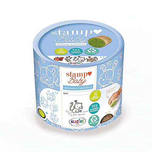 Aladine - Barn Stampo Baby frimärken - 4 FSC-miljövänliga trästämplar + bläck - kreativ fritid och fingerfärdighet - från 18 månader - Husdjurstema