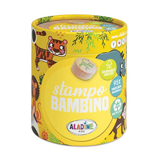 Aladine 3003132 stämpelset för barn, safari, 8 trästämplar med stämpelkuddar, trä, Stampo Bambino Savane, Animaux de la Savane