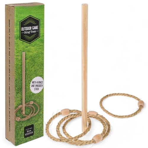 MIJOMA utomhus ring toss spel – ringkastäventyr för hela familjen, inklusive sisalringar och trästång, kul för trädgård och strand