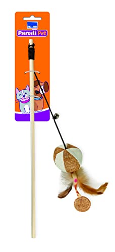 PARODER & PARODEN Fiskespö för katter med ljudpendel, robust trästav, interaktiv leksak, Blandade