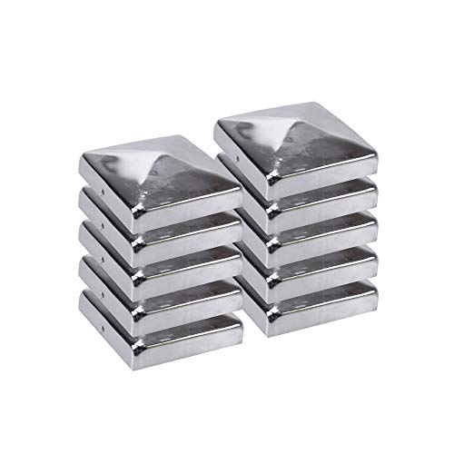 Stolpkåpor 7 x 7 cm – 10 stycken, 70 x 70 mm, rostfritt stål stängselstolpar/staketstolpar metall, pyramidform – stolptäckning 7 x 7 / staketstolpar lock för trästolpar/täckkåpor för staketstolpar