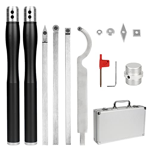 CEIEVER Roterande svarv, svarvstång, set med aluminiumlåda, svarvverktyg med svarvskivor och fast karbid-summerfräs, roterande mejsel, borrstång för träsvarv, gör-det-själv