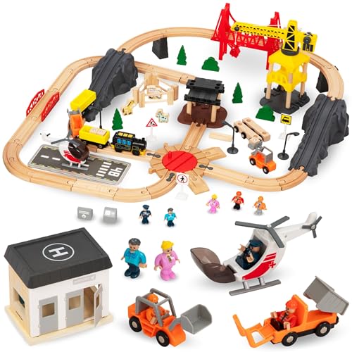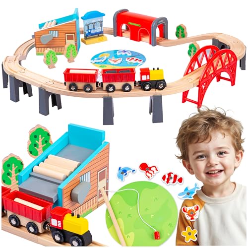 KABENFIS träspår 39 st tågspår leksak med kranbro och trätåg spår tåg leksak för barn