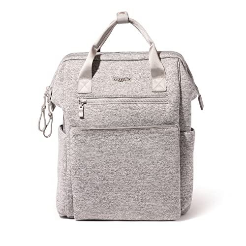 Baggallini Soho Backpack - Travel Laptop Backpack for Women - Lightweight Water-Resistant Luggage Bag, Heather Grey Neoprene