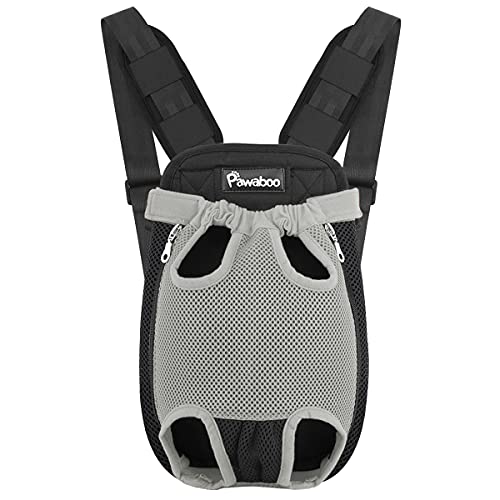Pawaboo Pet Carrier Backpack, Adjustable Pet Front Cat Dog Carrier Backpack Travel Bag, Legs Out, Easy-Fit for Traveling Hiking Camping for Small Medium Dogs Cats Puppies, Small, Gray