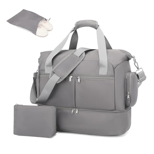 Kono Resa duffelväska 32 L vattentålig gym tygväska med skofack kosmetisk väska avtagbar axelrem lätt väska weekendväska med vagnärm, Grå, Duffelväska för resor