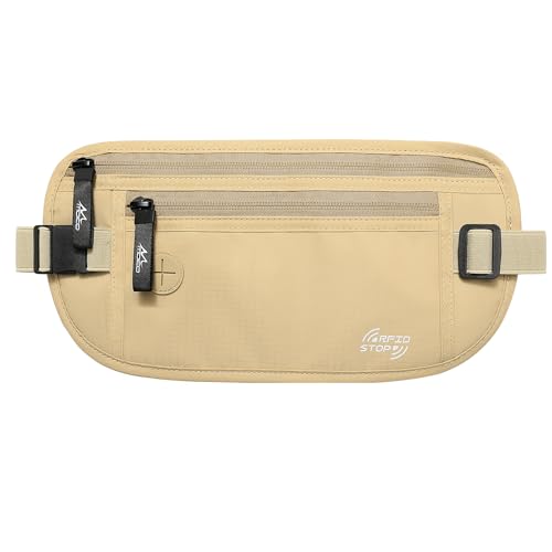 MoKo Secure Travel Money Belt, Undercover Hidden RFID Blocking Travel Wallet, Anti-Theft Passport Wallets for Men Women, Beige