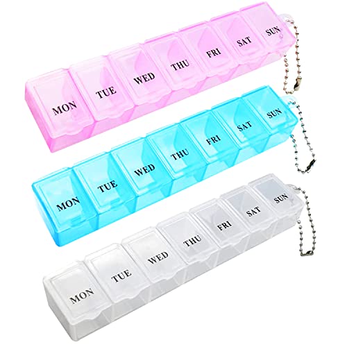 3st Pill Box, Portable Pill Organizer Travel Tablet Box 7 Days Tablet Organizer med fack för medicinering, kosttillskott, vitaminer och torskleverolja (rosa, vit och blå)