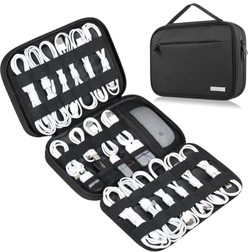 Lacdo Electronic Organizer Travel Cable Organizer Bag Pouch Tech elektroniska tillbehör Bärväska Bärbar för sladdar, kablar, laddare, strömadapter, telefon, powerbank, flash-enheter, Svart
