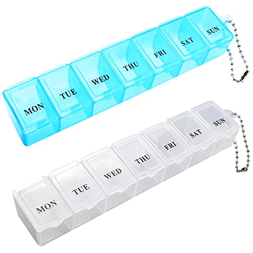 2st Pill Box, Portable Pill Organizer Travel Tablet Box 7 Days Tablet Organizer med fack för medicinering, kosttillskott, vitaminer och torskleverolja (vit och blå)