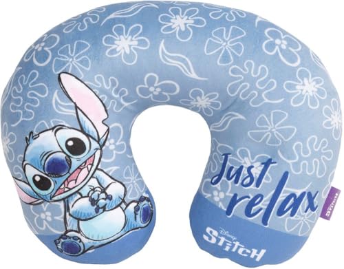 Tataway Stitch Travel Pillow - Memory Foam Cervical Support, mjuk och bekväm - Disney Lilo & Stitch Design, perfekt för resor med bil, flyg eller tåg - Perfekt för barn och vuxna, mäter 32x26x9 cm.