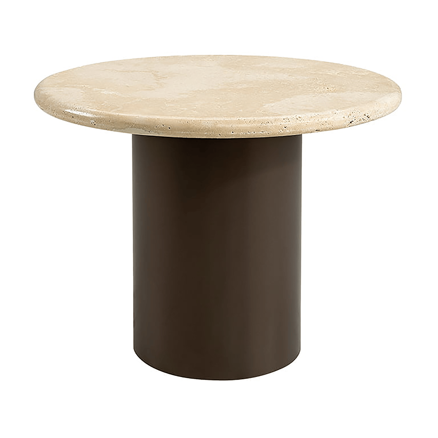 Calais soffbord Travertine/mörkbrun Ø70 cm