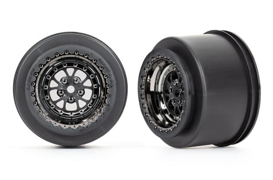 Traxxas 9475A Däck & Fälg Bak Matt Svart Krom (2) Drag Slash