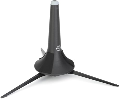 K&M 152/1 trumpetställ svart plast – gummerad kon med trefot och filtränder – transport i tratten
