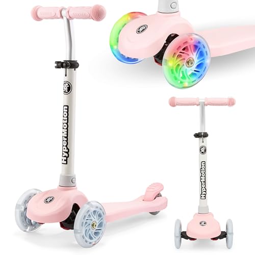 HyperMotion trehjuling skoter för barn 3–8 år, TRINGO balansskoter, halkfri fotbädd, justerbar skoter för flickor, pojkar 3+, max belastning 50 kg, rosa