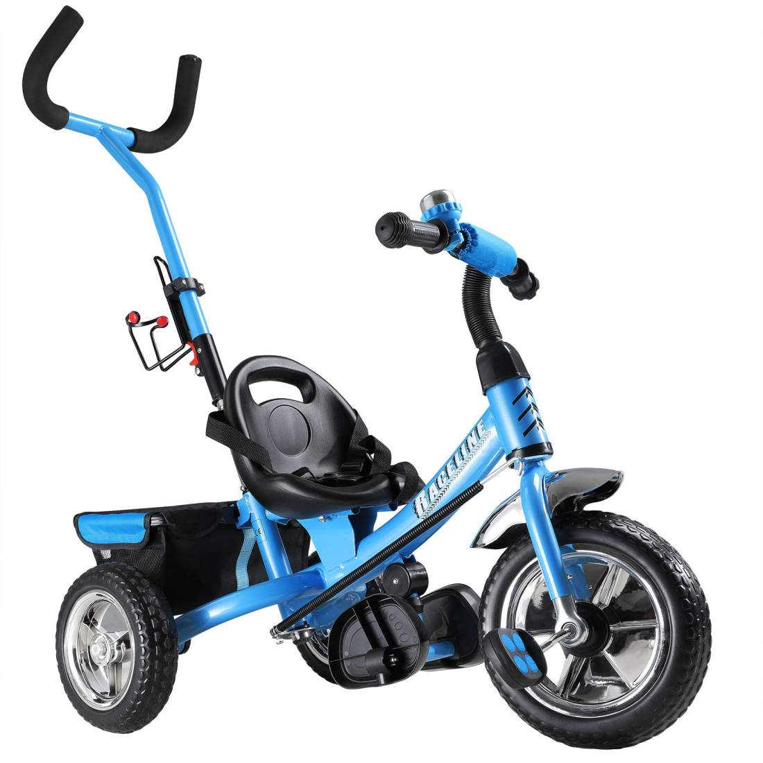 AIYAPLAY Barn trehjuling med ringklocka och korg - justerbar sadel med ryggstöd - för barn från 2 till 5 år blå