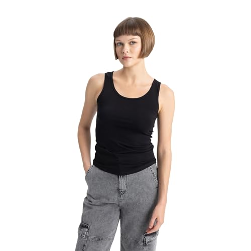 DeFacto Damcrop toppar, linne, sporttoppar, damer, trendiga damtoppar för sportiga stilar, mångsidigt kombinerbar, damtopp, svart, S