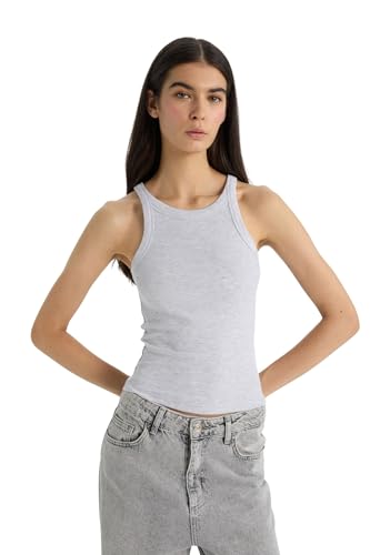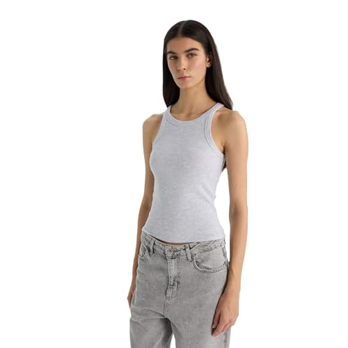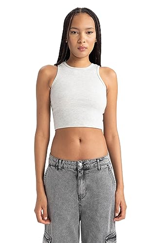 DeFacto Crop Toppar tanktopp sport toppar trendiga toppar för sportiga stilar mångsidig kombinerbar topp grå melange L