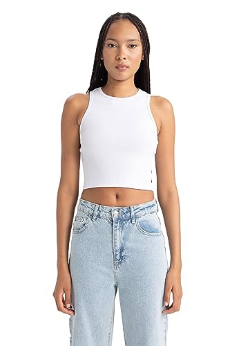 DeFacto Damcrop toppar, linne, sporttoppar, damer, trendiga damtoppar för sportiga stilar, mångsidigt kombinerbar, damtopp, Vit, XS