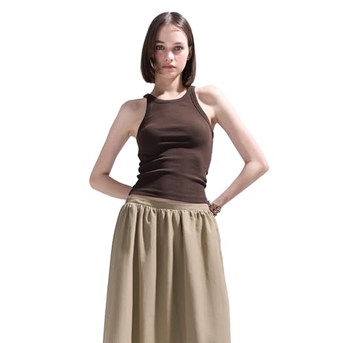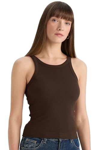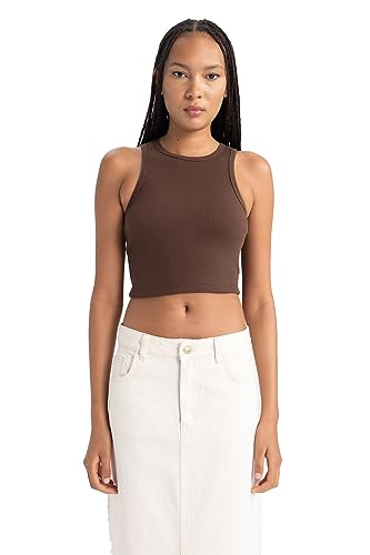 DeFacto Damcrop toppar, linne, sporttoppar, damer, trendiga damtoppar för sportiga stilar, mångsidigt kombinerbar, damtopp, BRUN, XS