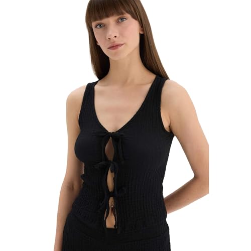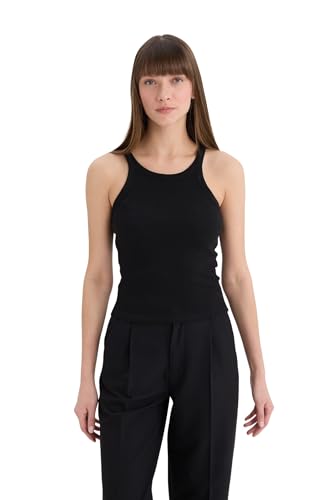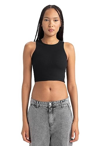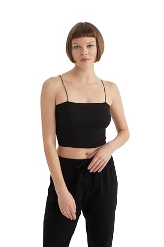 DeFacto Damcrop toppar, linne, sporttoppar, damer, trendiga damtoppar för sportiga stilar, mångsidigt kombinerbar, damtopp, svart, XS