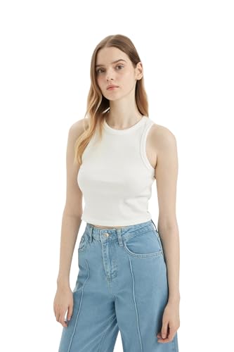 DeFacto Crop Toppar tanktopp sport toppar trendiga toppar för sportiga stilar mångsidig kombinerbar topp, ecru, XL