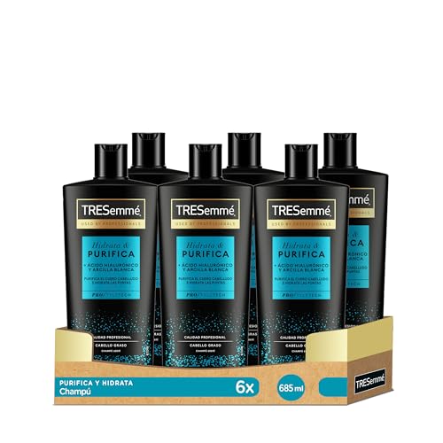 TRESemmé Hyaluronsyra och renande schampo för oljigt hår med hyaluronsyra och vit lera, ren och återfuktande, förpackning med 6 x 685 ml