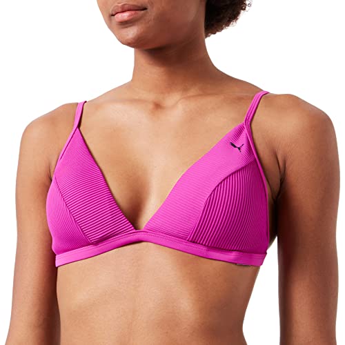 PUMA Badkläder för kvinnor ribbad triangel topp bikini, Lila kombo, XL