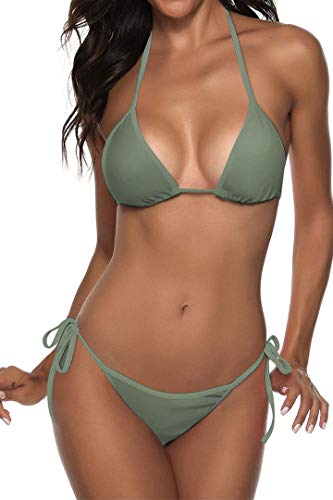 Kvinnor tvådelad bikini baddräkt sexiga badkläder hållare string triangel bikini set gräsgrön 1 m
