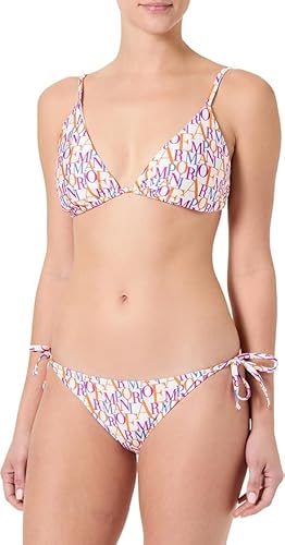 EMPORIO ARMANI dam Logomania triangel bikini vit XL, Bianco/Logo Multicol, XL