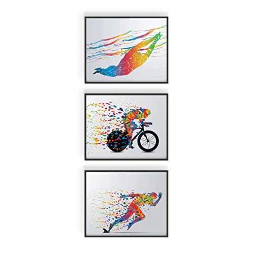 Ironman Triathlon väggkonst dekor – set med 3 (8 x 10) affisch foton – simning cykel löpning race män kvinnor sport