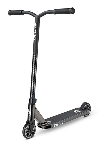 Chilli Pro Scooter™ Rocky | Originalet | Stuntsparkcykel med 360° styrning | High-end stuntskoter | För nybörjare | 110 mm PU-hjul | Trick Roller för barn och vuxna | Färg svart/neokrom