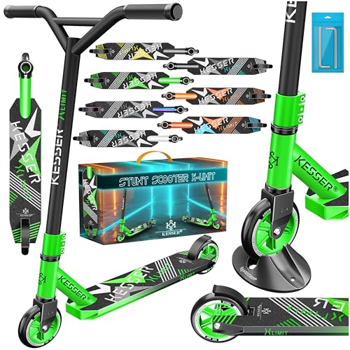 KESSER® Stunt Scooter X-Limit – 360° kontroll, robust, rolig scooter, stuntsparkcykel med ABEC 9 kullager, 100 mm PU-hjul, sparkcykel, stadsskoter, trick-scooter för barn, vuxna, grön/svart