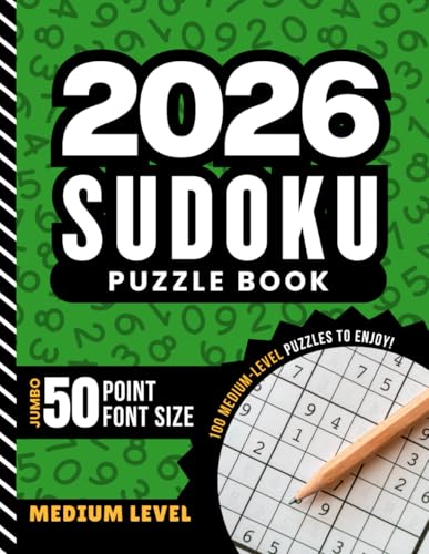 2026 Sudoku Puzzle Book: 100 Medium Puzzles / Jumbo Print - 50 Point Font / Huge Numbers / 1 Extra Large 9x9 Grid Per Page / With Solutions / Great Gift For Adults - Seniors