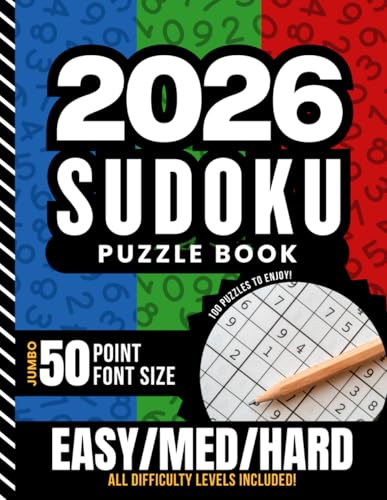 2026 Sudoku Puzzle Book: 100 Puzzles With Easy - Medium - Hard / Jumbo Print - 50 Point Font / Huge Numbers / 1 Extra Large 9x9 Grid Per Page / Has Solutions / Great Gift For Adults - Seniors