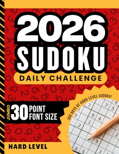 2026 Sudoku Daily Challenge: 365 Hard Puzzles / Extra Large - Jumbo Print / 30 Point Font / 9x9 Grid Per Page / With Solutions / For Adults - Seniors