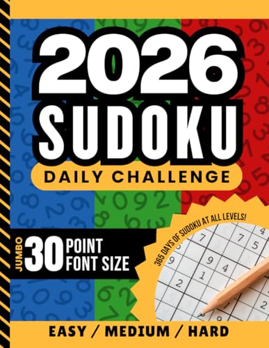 2026 Sudoku Daily Challenge: Enjoy A Full Year Of All Easy - Medium - Hard Puzzles / Extra Large - Jumbo Print / 30 Point Font / 9x9 Grid / With Solutions