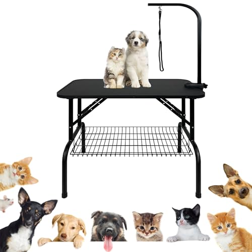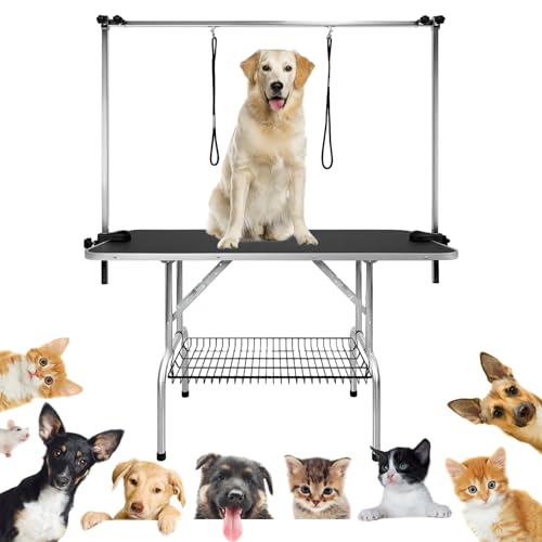 UISEBRT Trimbord för hundar – hundvårdbord djurvårdbord hundfrisör bord med höjdjusterbar galge, badbord kan belastas upp till 100 kg för hund och katt, 113 x 60 x 76 cm
