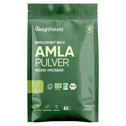 Ekologiskt amlapulver – 200 g Indisk krusbär – Alternativ till triphala- och haritaki – Certifierat – Amlabärpulver – Veganskt – Glutenfritt – Tillverkat i EU – Från WeightWorld