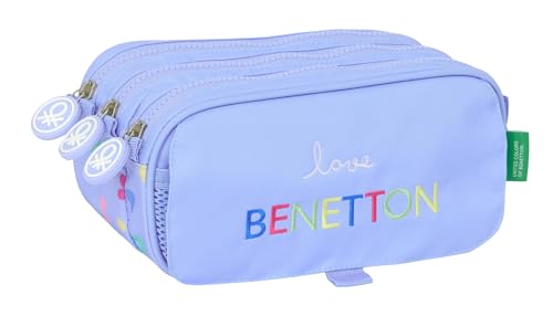 Safta BENETTON LILA - Trippel stort pennfodral, barnfodral, perfekt för skolbarn, bekväm och mångsidig, kvalitet och styrka, 21,5 x 8 x 10 cm, Lila, M, Avslappnad