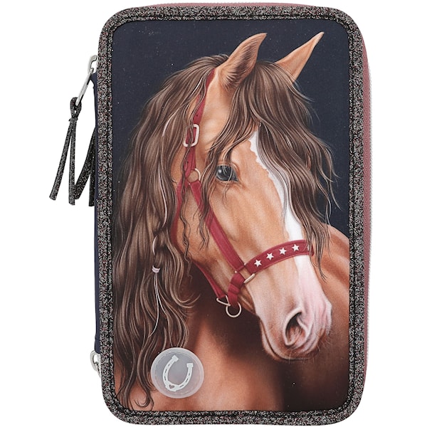 Miss Melody - Trippelpennfodral m. LED GLITTER HORSE