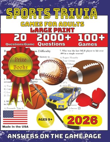 SPORTS TRIVIA GAMES FOR ADULTS Large Print: 20 QUESTIONS/GAME 2000+ QUESTIONS 100+ GAMES