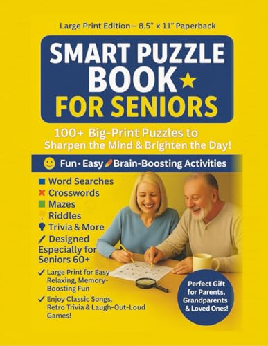 Smart Puzzle Book for Seniors: 100+ Large‑Print Word Searches, Mazes, Trivia, Riddles, Memory Games & Coloring Breaks to Spark Joy, Boost Focus & Celebrate Nostalgia