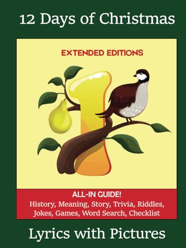 12 Days of Christmas Lyrics with Pictures - EXTENDED EDITIONS: ALL-IN GUIDE to History, Meaning, Story, Trivia, Riddles, Jokes, Games, Word Search, and Checklist | 12 Days of Christmas Carol