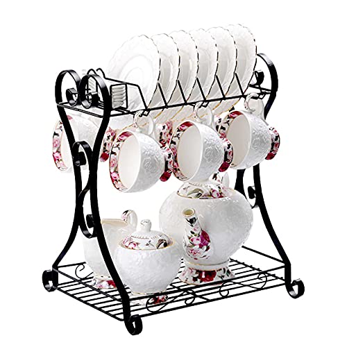 15 Pieces Porcelain Tea Set Ceramic Coffee Cup and Saucer Sets, with Milk Jug and Sugar Bowl Wedding Tea Service for Adults,A (A)