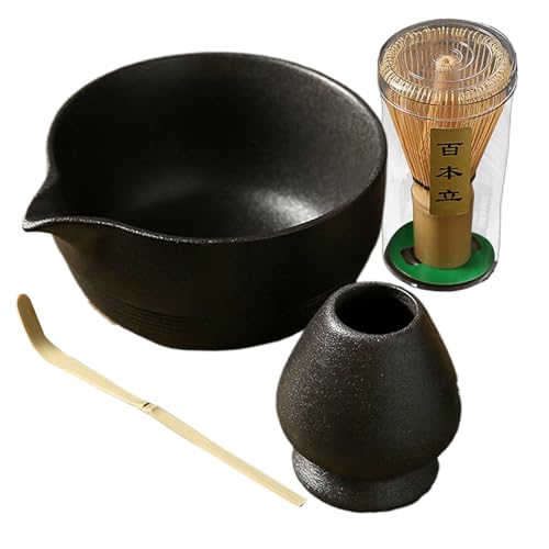 Matcha Kit, Matcha Whisk Set, Matcha Tea Set, Whisk and Bowl, Matcha Spoon Set, Ceramic Matcha Bowl, Matcha Tea Whisk, Traditional Japanese Design Easy to Clean for Matcha Enthusiasts