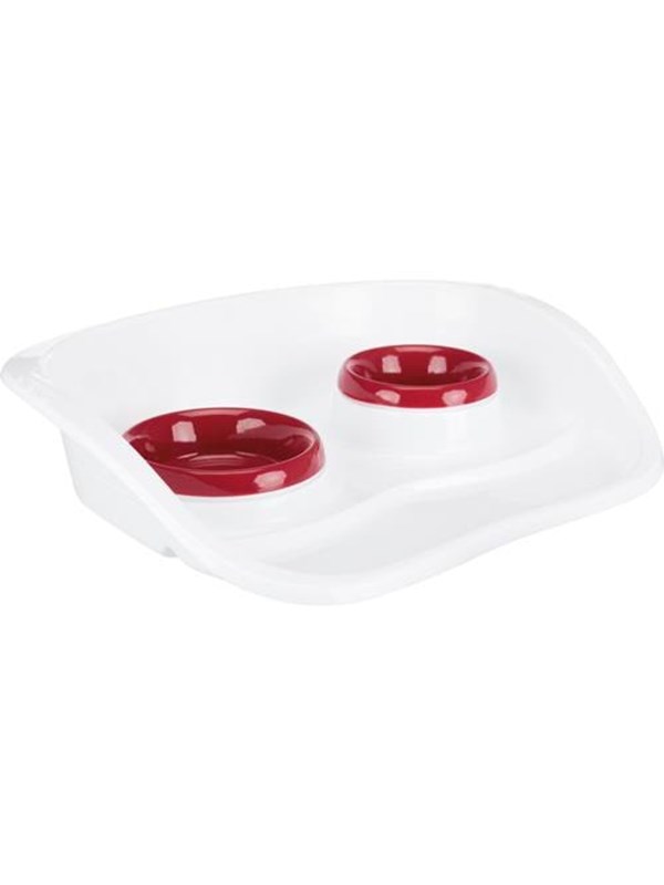 Trixie Bowl set,2×0.3l/ø12cm/30×6×15cm,white-lightbrown/ligh...