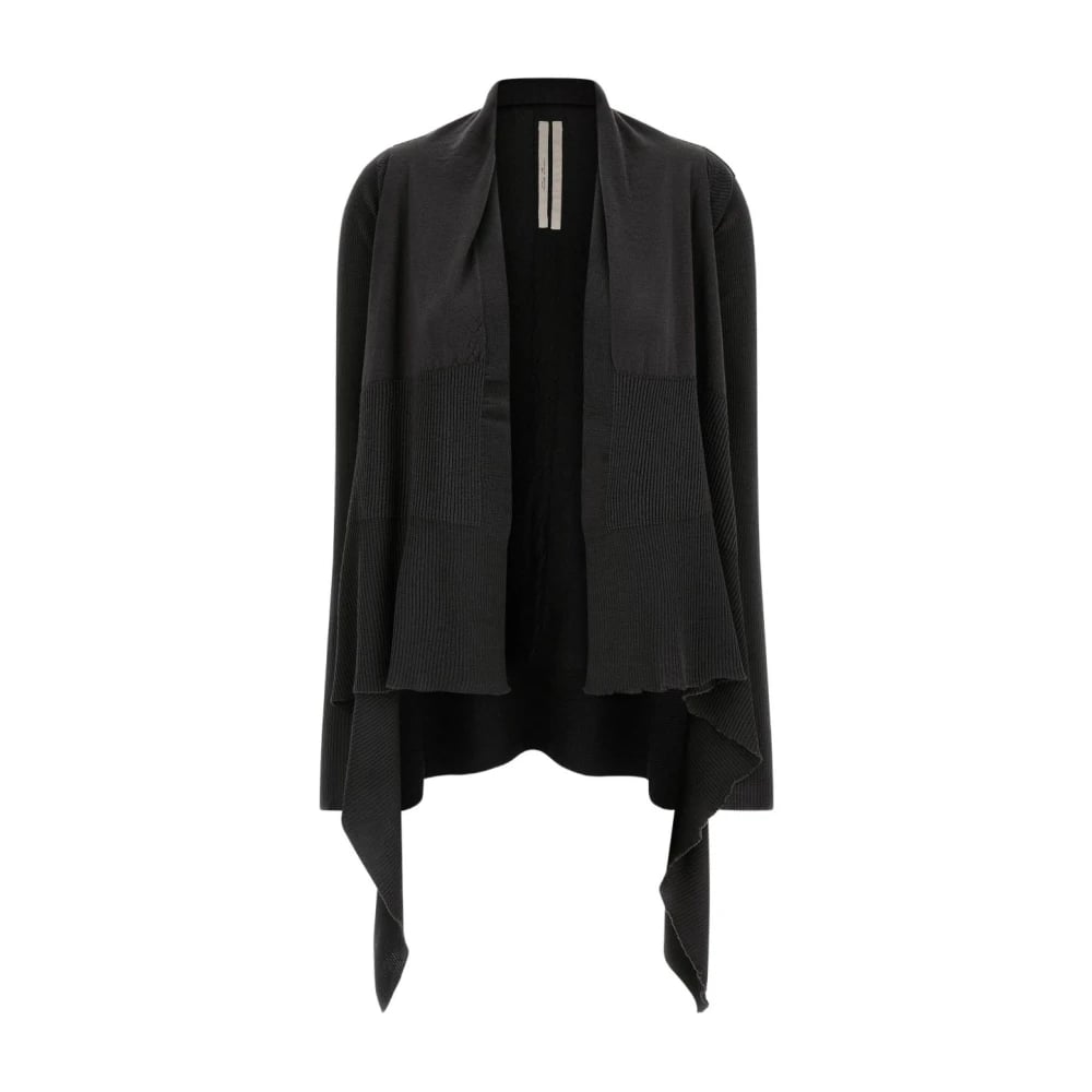 Rick Owens, Stickade Tröjor , Dam, M, Svart Stickad Kofta 100% Virgin Ull
